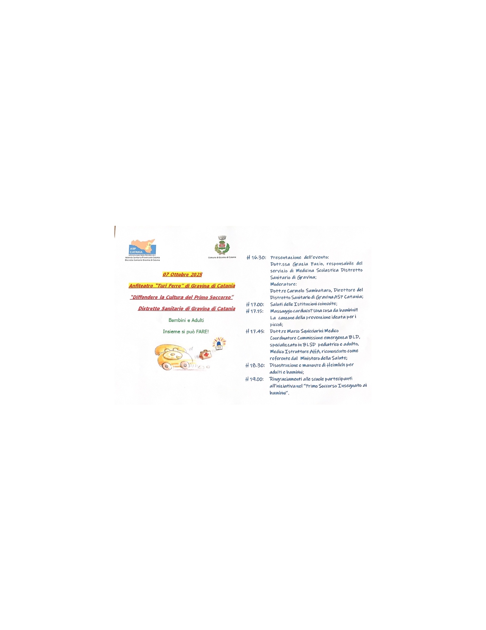 07 Ottobre 2025 – Anfiteatro “Turi Ferro” di Gravina di Catania “Diffondere la Cultura del Primo Soccorso”.